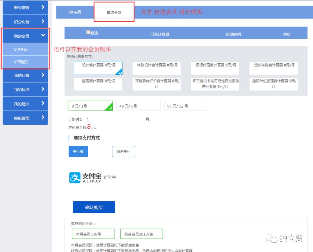 步骤一、点击头像,显示二级菜单,点击购买会员,选择自选会员